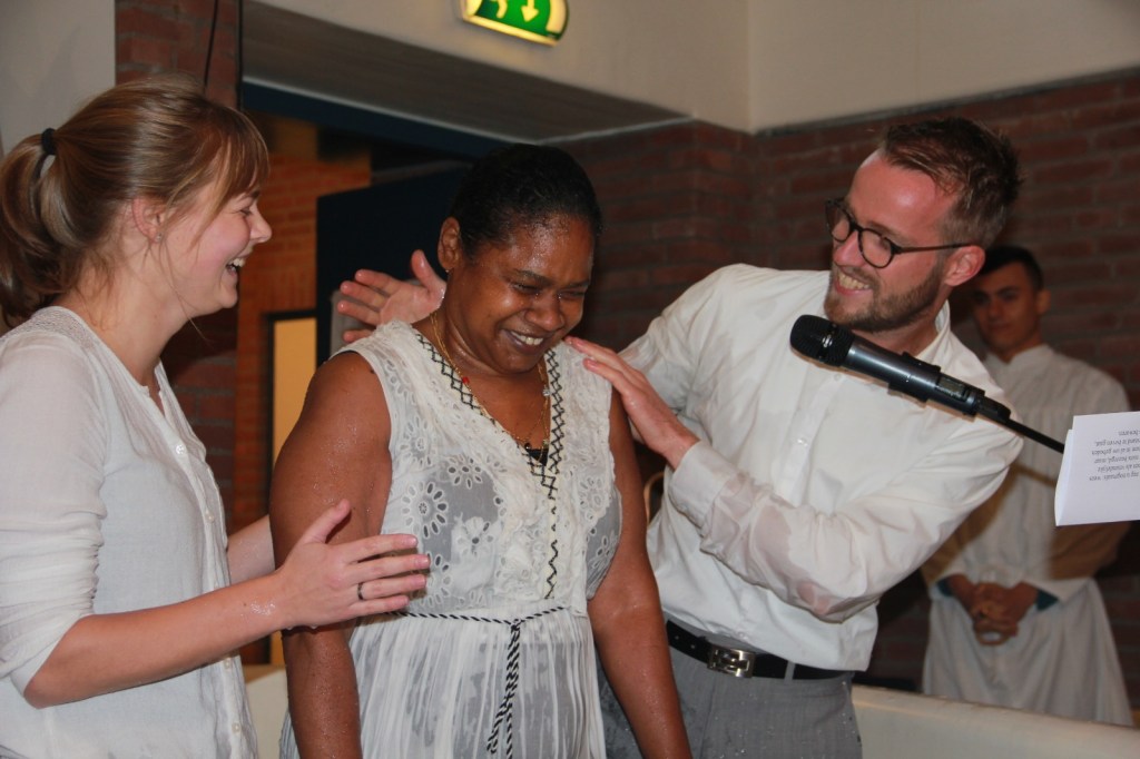 Bij het eerste punt benadrukt Theo dat we dopen in de kerk. Niet gewoon ergens thuis, in een badkamer. Nee, in de kerk, omdat je door de Doop lid wordt van het Lichaam van Christus. En dat Lichaam is groter dan de gemeente hier. Dat Lichaam is de kerk wereldwijd. Ondertussen is het doopwater hier hetzelfde als het doopwater in je geboorteland, waar mensen in het geheim gedoopt worden, stiekem. Het is ook hetzelfde doopwater als het water waarmee de 3000 gedoopt werden op de eerste Pinksterdag. Het is ook hetzelfde water waarmee Johannes Jezus doopte.