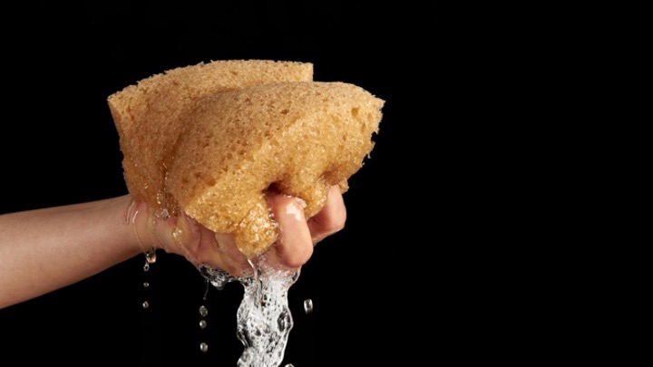 Theo trekt de aandacht door een droge spons omhoog te houden en ertegen te tikken. De spons is keihard. En daarom gooit hij ‘m aan de kant: “Useless”.