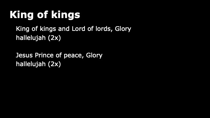 Om de uitstroom goed te regelen, rij voor rij, wordt na de zegen nog een lied gezongen, waarbij dan wel niet meegezongen kan worden, maar wel geklapt: “King of kings and Lord of lords, Glory hallelujah”.