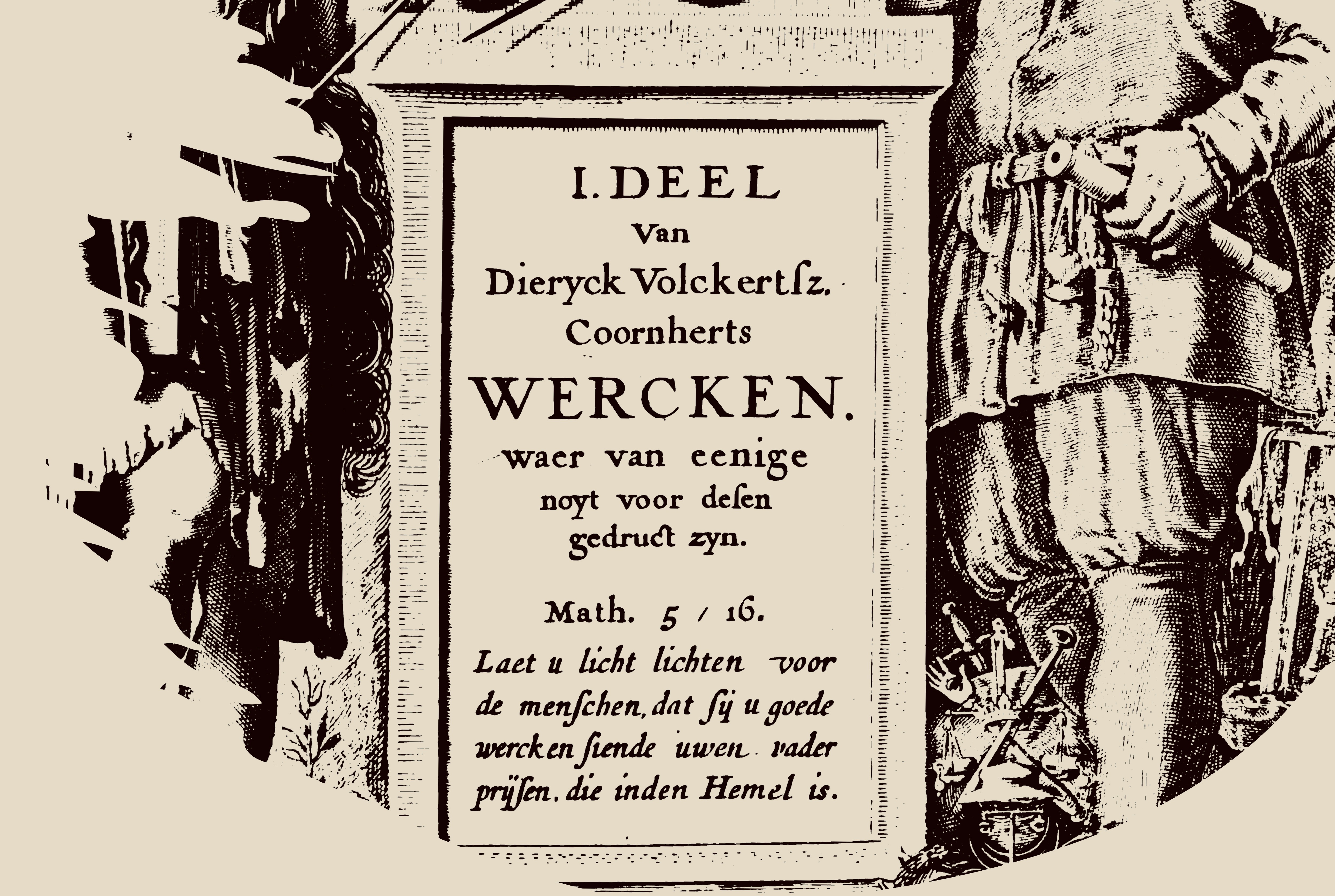De voorkant van zijn in 1630 uitgegeven Wercken is in dit geval ook treffend. Daarop staat de Bijbeltekst waar het Coornhert uiteindelijk om te doen is: Mattheüs 5:16: