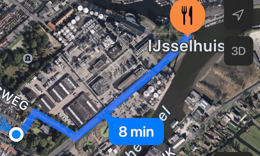 Bij vertrek appte Lianne haar zus: ‘We komen er aan’. Nu is de afstand tussen de PC Hooftstraat en het IJsselhuis volgens de routeplanner 600 meter. De planner geeft daar 8 minuten voor. Dus ik denk: ‘Wat als ik dat in 7 minuten kan. Dan ben ik sneller dan de planner. Wel 7/8, dat is 12,5 %!’. Voor aanvang ben ik al zwaar onder de indruk van mijn eigen prestaties.