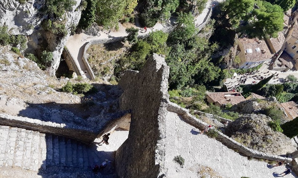 En dat is nog niet alles. Lianne heeft – om mij te verrassen – een opvouwbare rolstoel geregeld. Kan Guido me. mooi duwen naar o.a. de Notre-Dame-de-Beauvoir-kapel in Moustiers-Sainte-Marie. Er wordt gezegd dat je goede schoenen nodig hebt voor de 262 treden tellende trap. Goede schoenen heeft hij vast. Een lieve vrouw en toffe schoonvader heeft hij zeker. Hopelijk lukt het duwen een beetje…