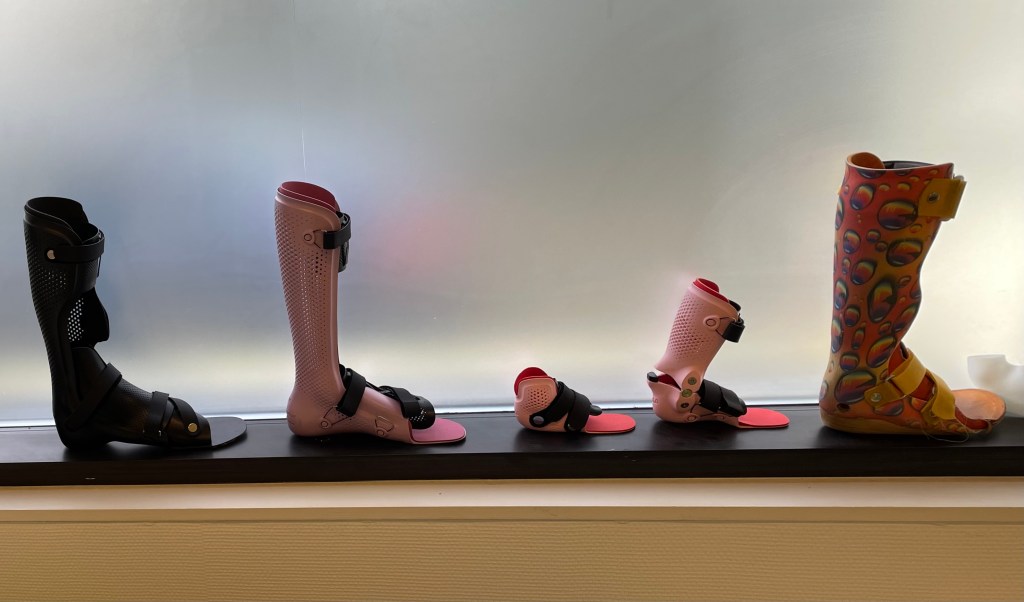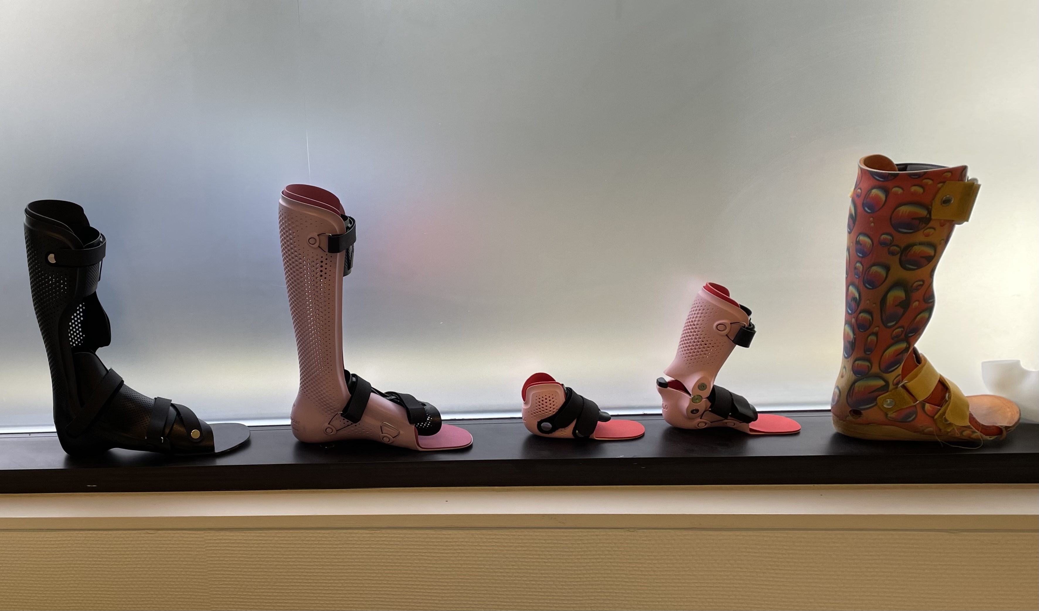 In de wachtkamer zitten allemaal mensen met op maat gemaakte protheses.