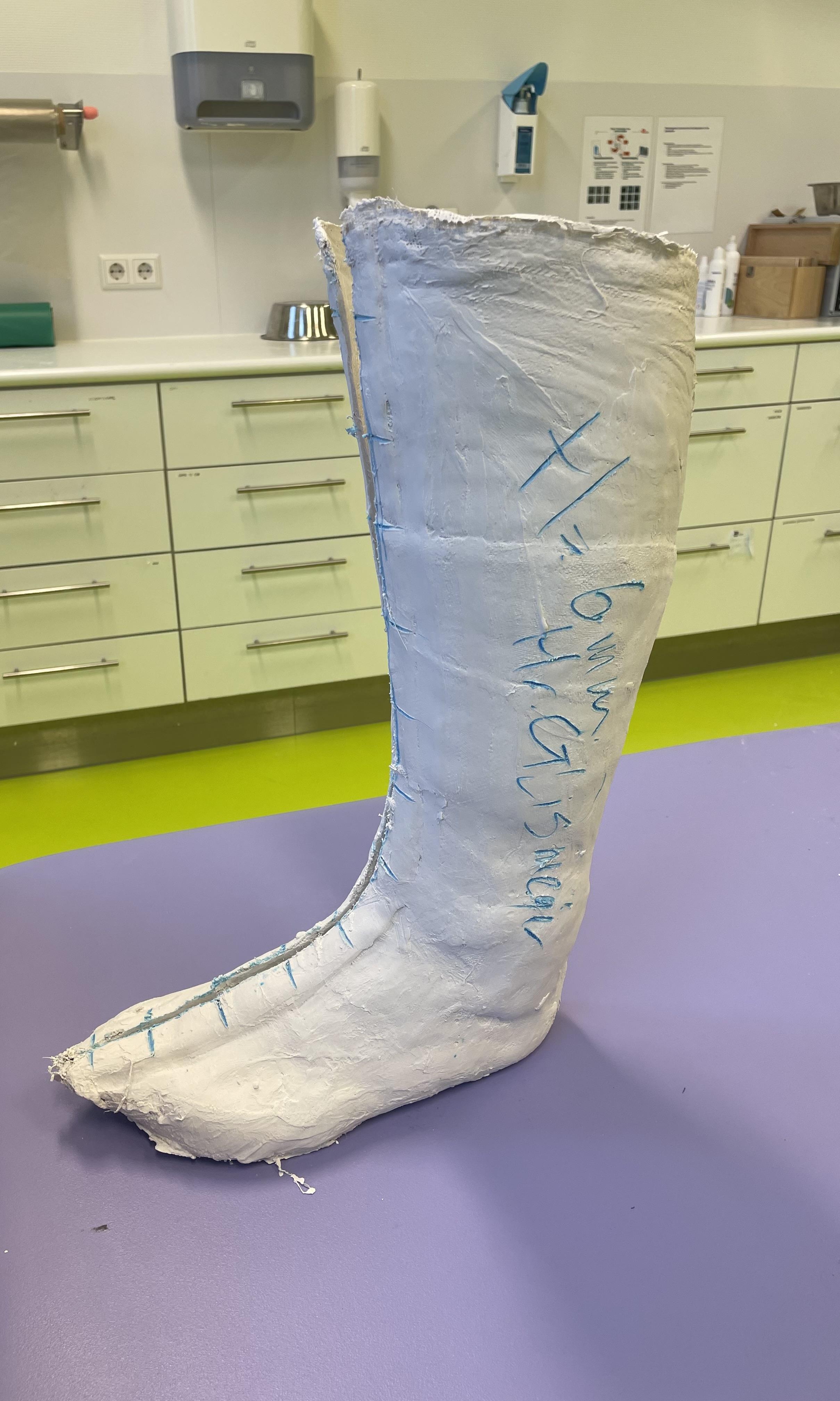 Ondertussen is het gips om been en voet hard geworden.