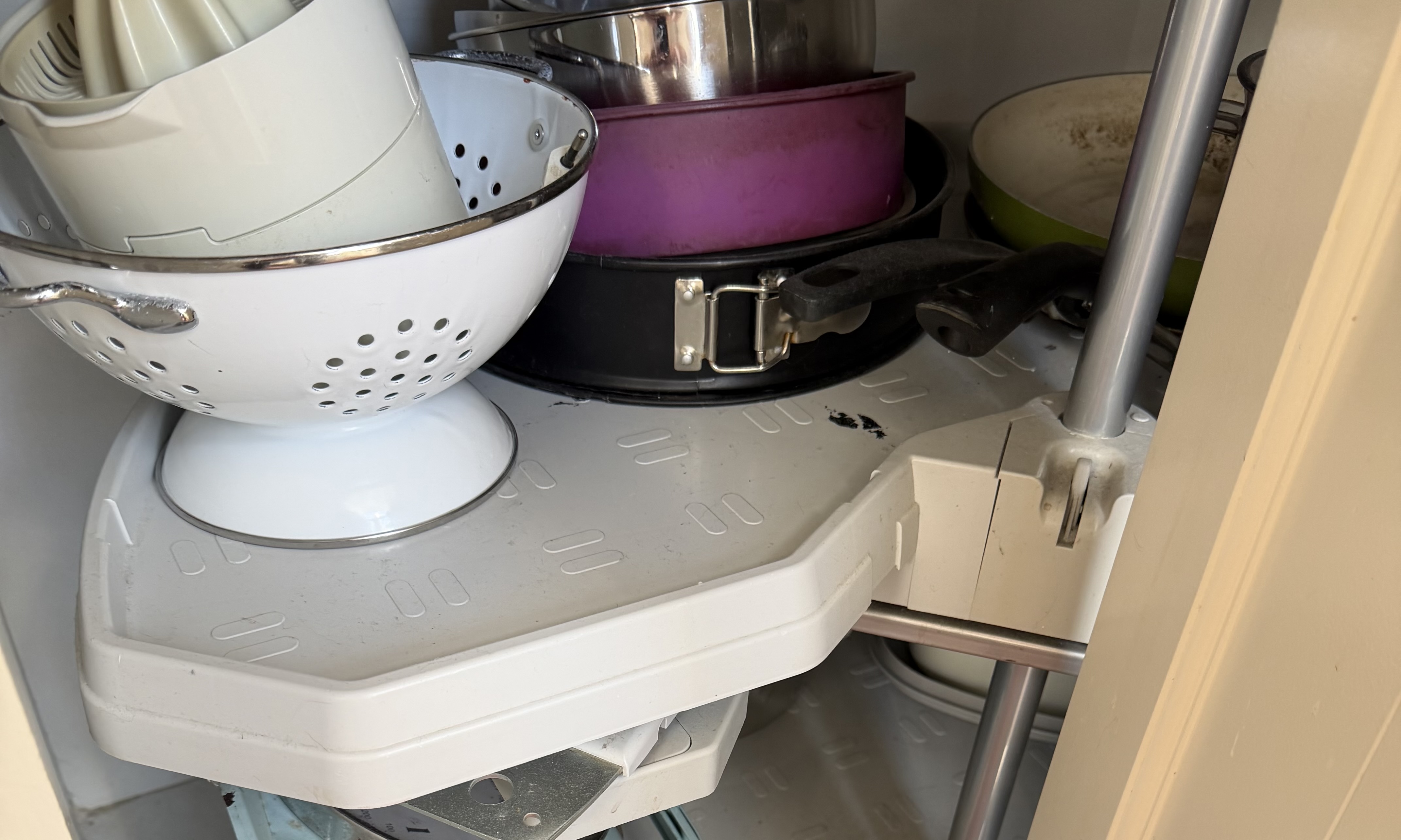 De carrousel in het keukenkastje is namelijk kapotgegaan.